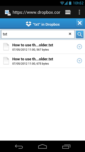 Outra diferença do Dropbox Mobile é que o tamanho do arquivo está visível a todo instante. Isso ajuda a decidir se é possível baixá-lo via 3G ou se é melhor esperar estar conectado a uma rede Wi-Fi. Extensões compatíveis com o celular, como fotos e arquivos TXT, podem ser visualizadas no próprio aparelho.